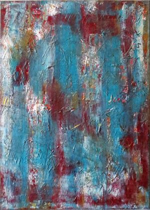 Nebel in der Stadt - Acrylfarbe auf Leinwand, mittleres Format, Farben blau rot